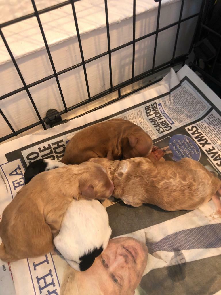 All puppies will be microchipped wormed flea treated and have 1st injection with a vet check. The mother is a apricot poochon and father is miniature parti poodle. 4 girls 2 boys mum is a lovely purebred bichon frise with a gentle nature. All puppies will be microchipped wormed flead and vet ch.