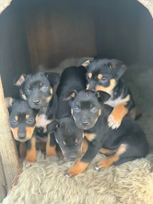 Mother is a pure bred registered red kelpie and father is a border collie x kelpie dog. Breed to work these dogs are by registered kelpie. Pups will suit working homes or the active family. 4 red tan 3 solid red males.